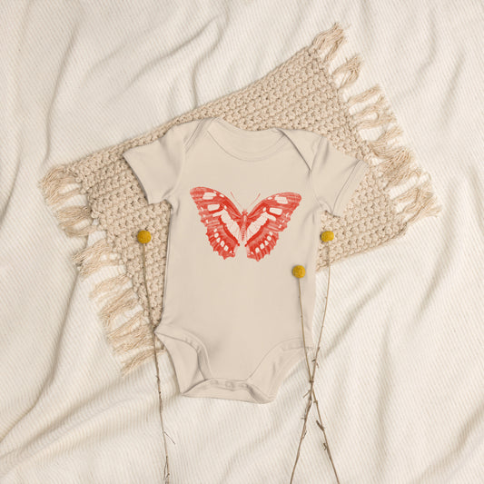 Two Owls Red/Red Butterfly Organic cotton baby romper