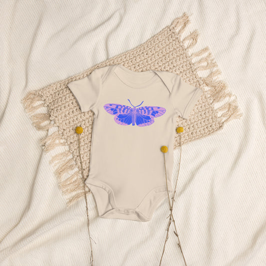 Two Owls Little Blue/Lavender Butterfly Organic cotton baby romper