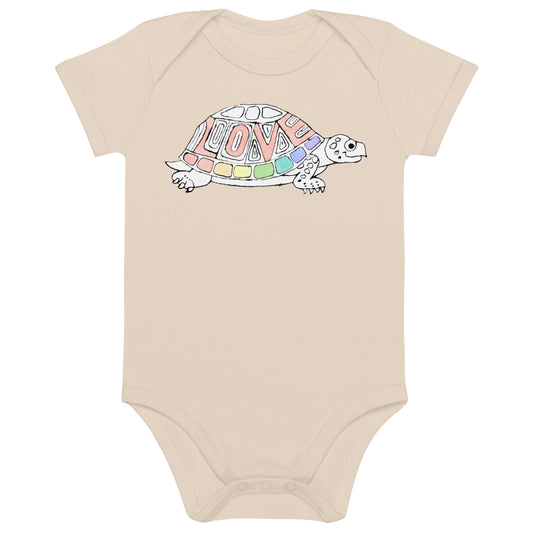 Organic cotton Rainbow Love Turtle baby romper