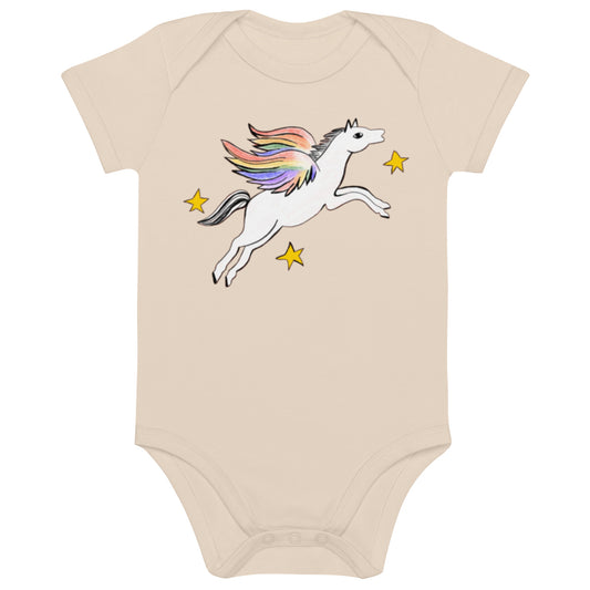 Two Owls Rainbow Pegasus Organic cotton baby romper