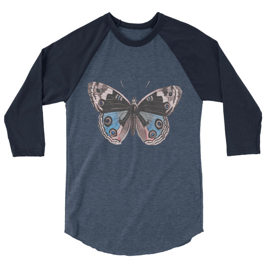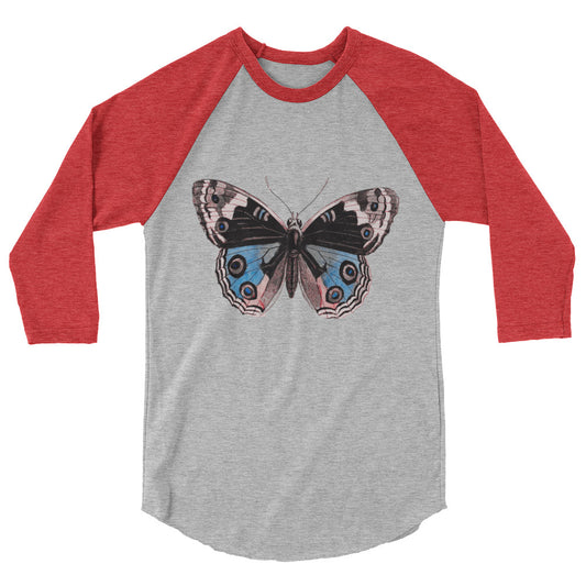 Two Owls Butterfly Black/Blue/Red 3/4 sleeve raglan shirt