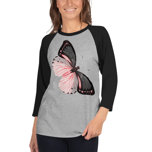 Two Owls Black/Pink Butterfly 3/4 sleeve raglan shirt