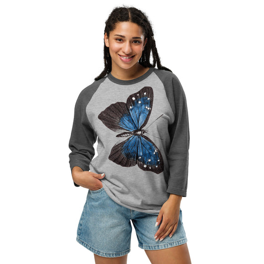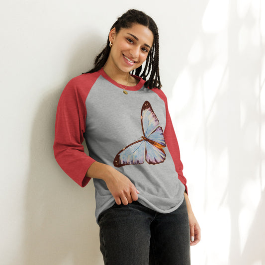 Two Owls Lt Blue Butterfly 3/4 sleeve raglan shirt