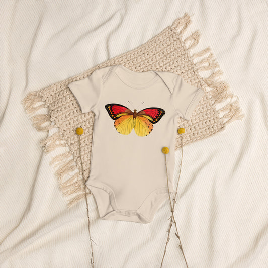 Two Owls Red/Yellow Butterfly Organic cotton baby romper