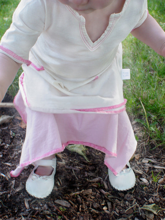 TwOOwls Natural/Pink Baby Tunic Dress -100% organic cotton