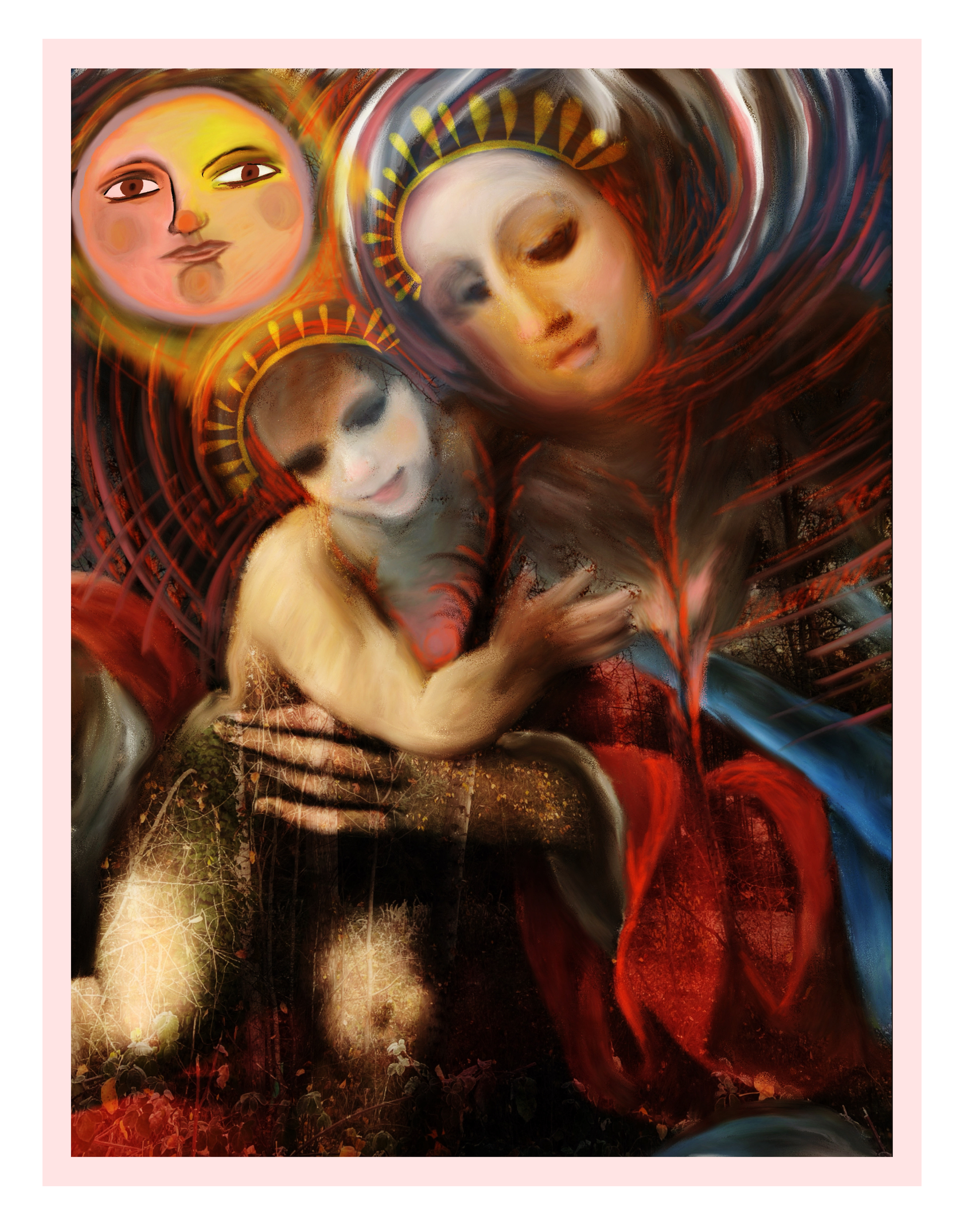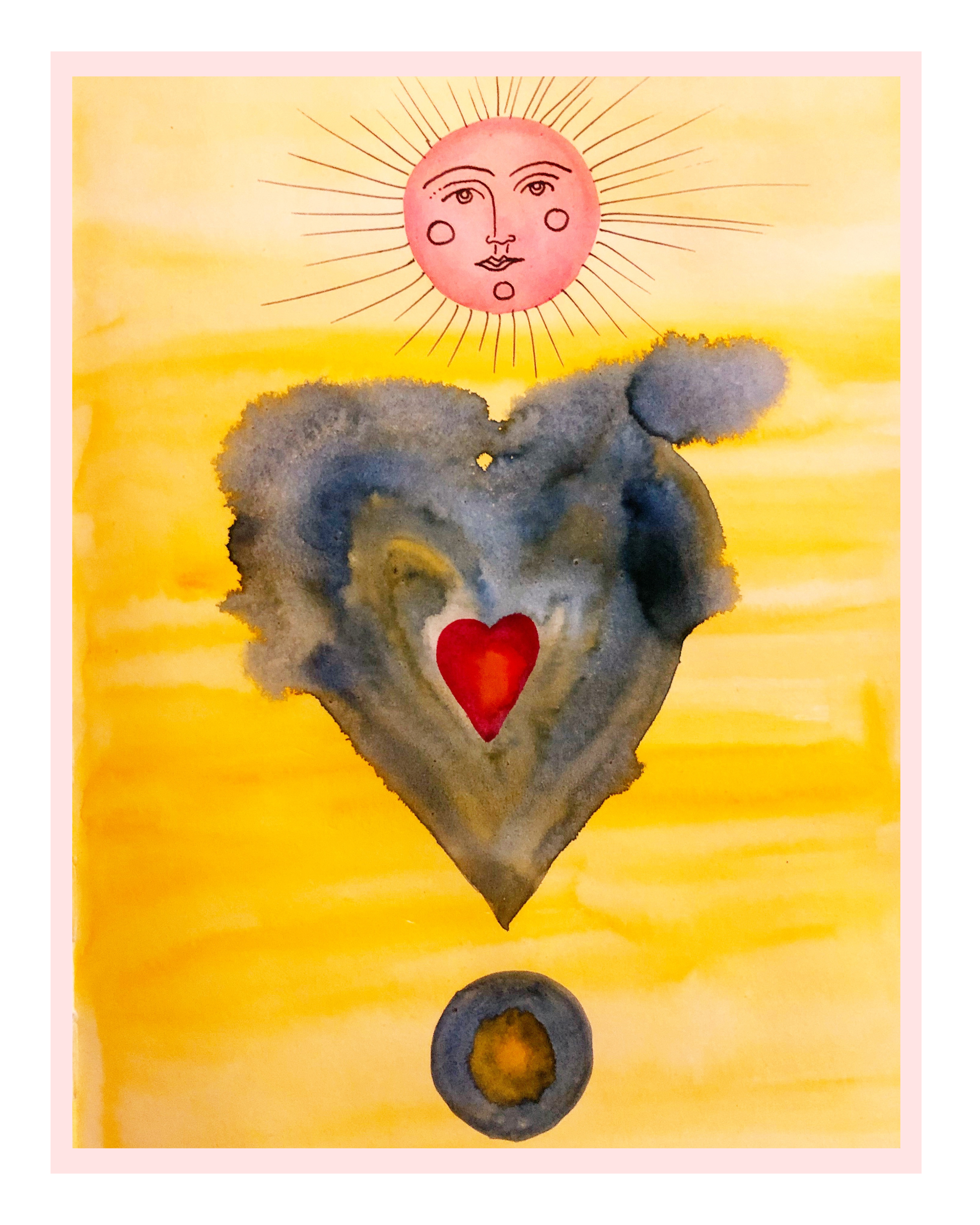 This desk calendar is meant to bring daily inspiration. It includes pages for Intention, Growth, Visualization, Reflection, Daily Goals, and Notes. It also includes international holidays and the moon phases. All colored art pieces are original paintings by Mona Anastas.