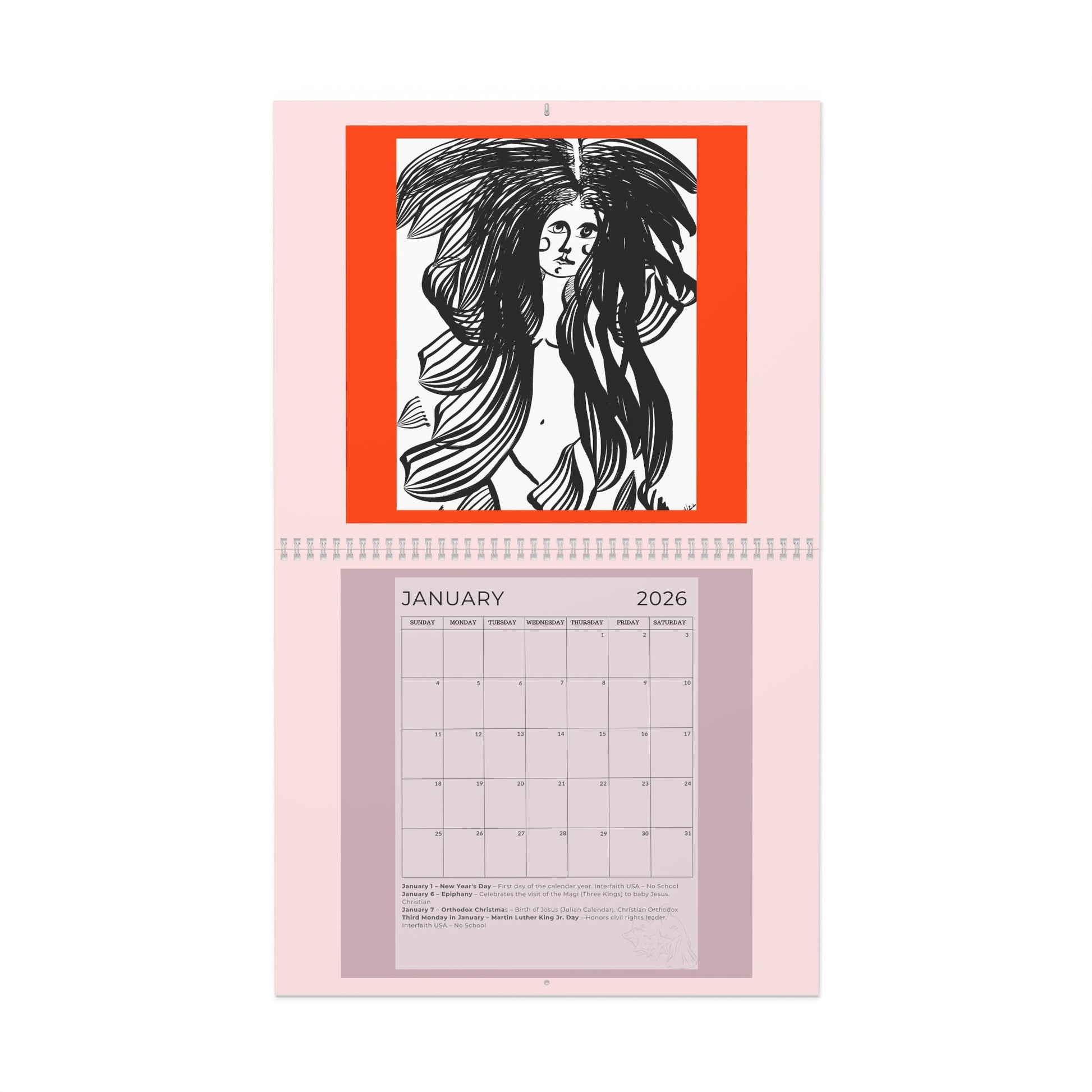Stay inspired daily with this Wall Calendars featuring paintings by Mona Anastas. Hang it anywhere in your office or home for a premium feel and fill each month with your own layout for a personalized touch. Relevant for those looking for daily motivation and organization, perfect for birthdays, holidays, and special occasions.